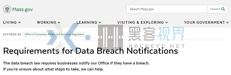 根据这部新的马萨诸塞州法律,企业必须采取的具体步骤在马萨诸塞州联邦政府网站的“数据泄露通知要求(Requirements for Data Breach Notifications)”网页上有详细说明。