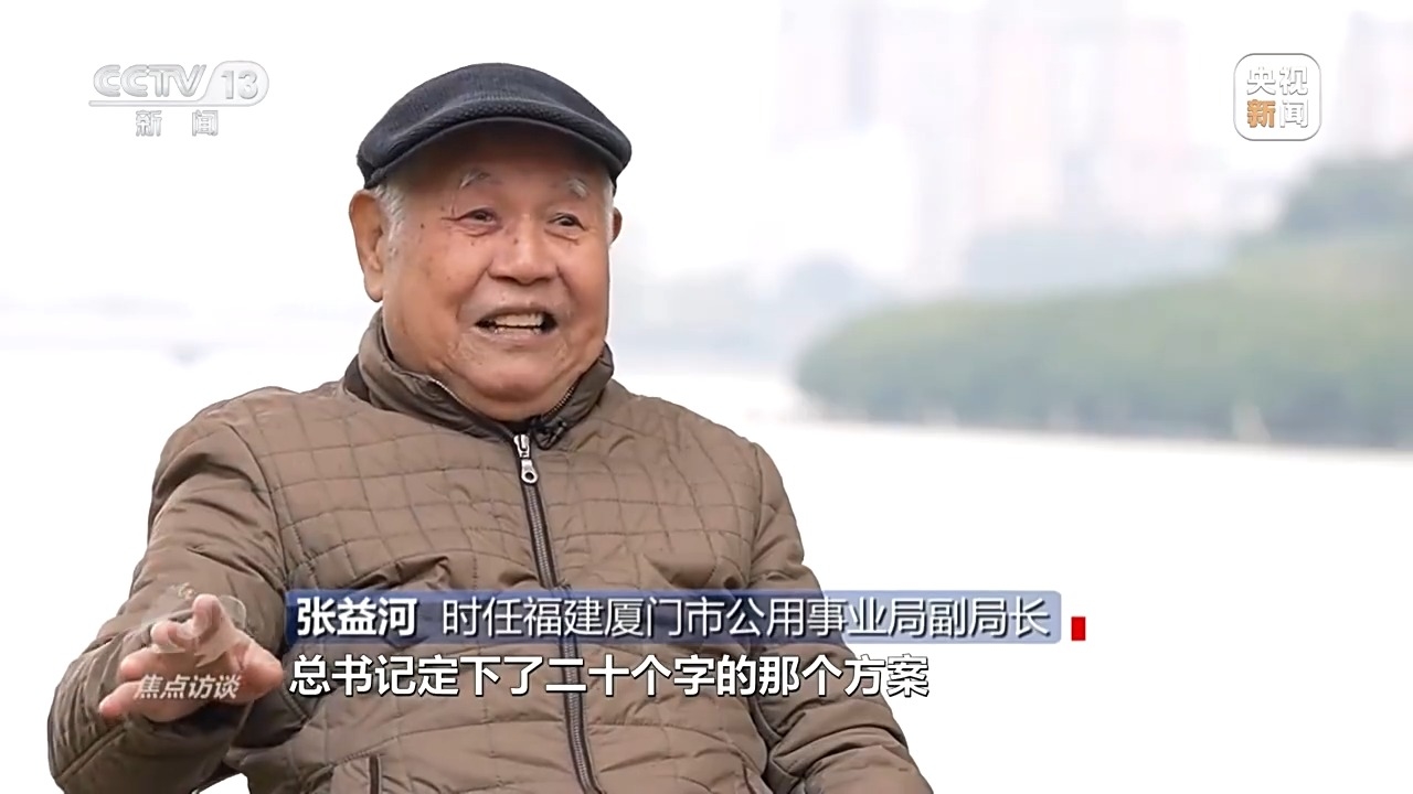 时任福建厦门市公用事业局副局长 张益河:“总书记定下了二十字方案,给生态保护、生态恢复、水污染治理开了先河,是厦门的第一炮。”