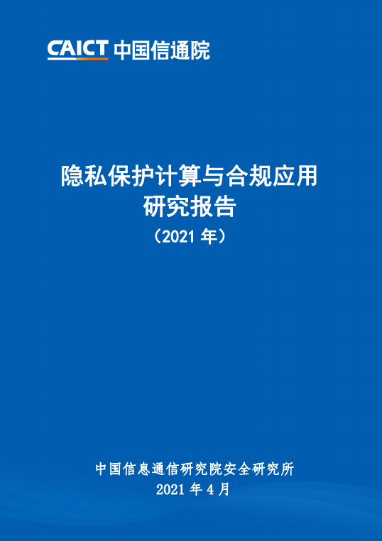 据此,为数据要素流通市场之兴,积累隐私保护计算技术合规应用之源,中国信息通信研究院(以下简称“中国信通院”)安全研究所与阿里巴巴集团安全部、北京数牍科技有限公司、腾讯研究院、智联出行研究院、中国工商银行共同撰写了《隐私保护计算与合规应用研究报告(2021年)》(以下简称“报告”),以期为数据要素流通共享与协同应用建立信心。