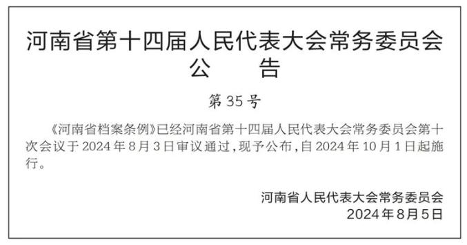 原标题:《【特别关注】河南省档案条例公布,10月1日起施行!》