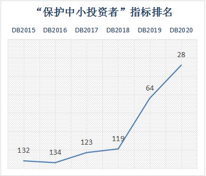 我国已连续两年被世界银行评选为全球营商环境改善幅度最大的10个经济体之一。其中的“保护中小投资者”指标,更是被誉为改革幅度最大的指标之一。DB2018中我国仅排第119名,之后我国从世界银行评估的方法论入手,详细研判该指标,吸收借鉴有益制度,对相关法律法规加以修订,在DB2019中我国排名得到大幅度跃升,排名第64,是进步最快的指标之一。在DB2020中,我国排名再次攀升,为全球第28名。