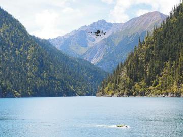 无人船与无人机相互配合,对九寨沟内这个最大、最深的高山湖泊进行水下、水上同步测量。
