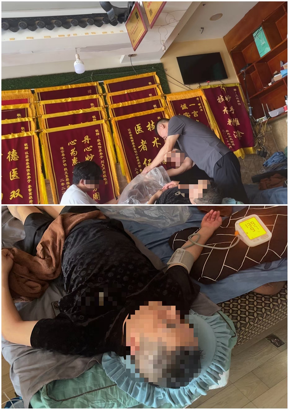 “我是非遗传承人,你可以在网上搜我的名字,经络散结全网就我一个。”他指着几位俯卧在床的中年男女说,“他们都是来看病的,我们这里专门看医院看不好的病。”
