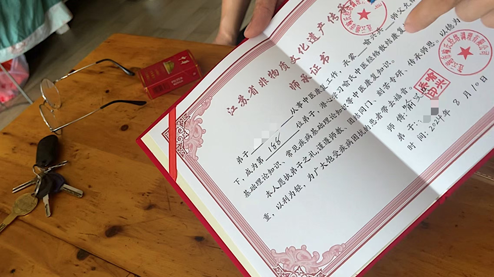 三万元拜师学艺,还能获得师傅印发的“师承证书”,江苏省省级非遗“经络散结疗法”传承人喻兴兵借自己的“九代单传经络店”带徒授艺牟利,宣称能调理好各种疑难杂症,甚至是绝症。