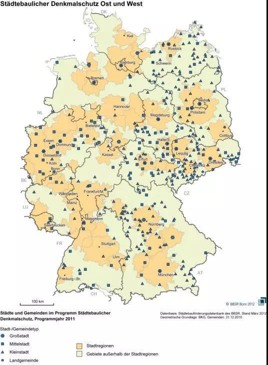1991至2012年,共计296个历史城市得到该项目的支持(其中前东德各州178个,前西德各州118个),项目中既包括历史悠久的古城核心区,也包括19世纪城市扩张地区、20世纪的居住区。