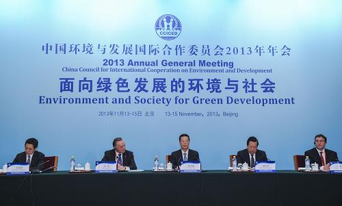 国务院副总理、中国环境与发展国际合作委员会主席张高丽13日在北京钓鱼台国宾馆会见参加国合会2013年年会的主要外宾并出席年会开幕式。