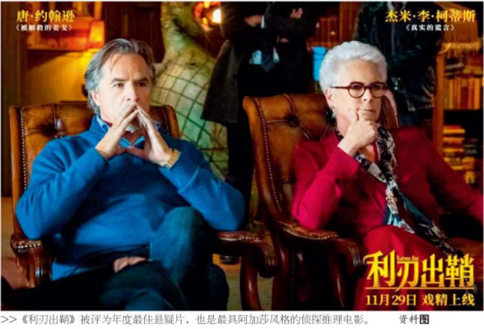 侦探推理和犯罪题材,可以说是法律的边缘题材作品,这类作品有很多的拥趸。英美国家有很多这类作品,2019年在中国大银幕上放映的影片《利刃出鞘》是一部阿加莎·克里斯蒂风格的推理影片,该片展现一起神秘凶案:一位著名犯罪小说作家的豪宅里,一家人聚在一起为其庆祝85岁生日,这位年迈而富有的作家不久突然死亡,克雷格饰演的侦探对这一案件进行了调查。