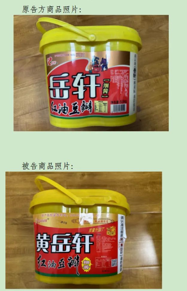 原告北京某公司成立于2003年,其前身是1996年成立的成都某公司,主营豆瓣酱生产销售。2000年,成都某公司根据其法定代表人的家族姓氏,创作并注册了“岳轩”商标,后将该商标转让给原告。原告及关联公司使用该商标生产一款“岳轩红油豆瓣”商品,销售地包括河北保定等地农副产品批发市场。被告天津某食品厂经“合作商”顾某(化名)的授权,使用顾某申请注册的“黄岳轩”商标,于2021年5月开始生产一款与原告商品包装装潢近似的豆瓣酱商品,同样销往河北保定等地的农副产品批发市场。