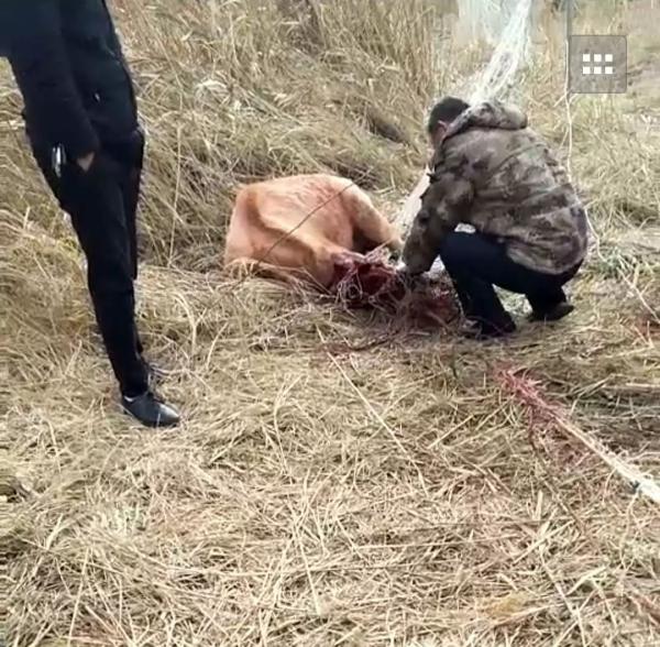 两头死亡麋鹿中有一头是 3 月 3 日发现的。在环保志愿者提供的一段视频中,事后第二天,他们看到有种植户在那个地点补网。