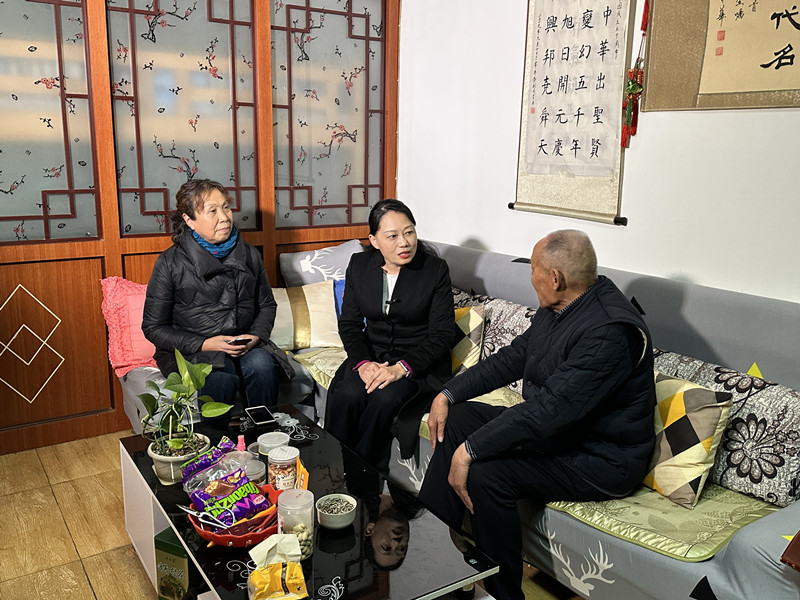 全国人大代表方燕(中)就老年人“吃饭难”等居家养老问题在老人家中进行调研。 职爽 摄