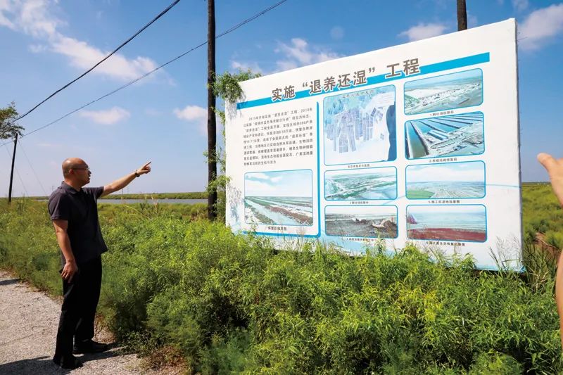 盘锦市自然资源局副局长纪金章对记者说,实施“退养还湿”工程,恢复湿地面积 8.59 万亩,恢复自然海岸线 15.77 公里,造就了全国最大“退养还湿”单体工程。