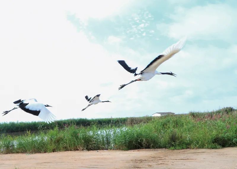 辽宁辽河口国家级自然保护区的成立,正是基于丹顶鹤繁殖种群的发现而划建的。从1985年的市级保护区发展到现在的国家级保护区,历经了39年时间。在盘锦,丹顶鹤及其栖息地保护成效显著。丹顶鹤大陆种群在保护区停歇或繁殖数量最多达到808只,自然越冬达到近百只。2016 年以来,人工繁育丹顶鹤 442 只、野化放归 140 只,调查监测到野外筑巢、孵化的丹顶鹤22 对,成活雏鹤 24 只,为建立丹顶鹤不迁徙种群和野外种群复壮奠定了基础。