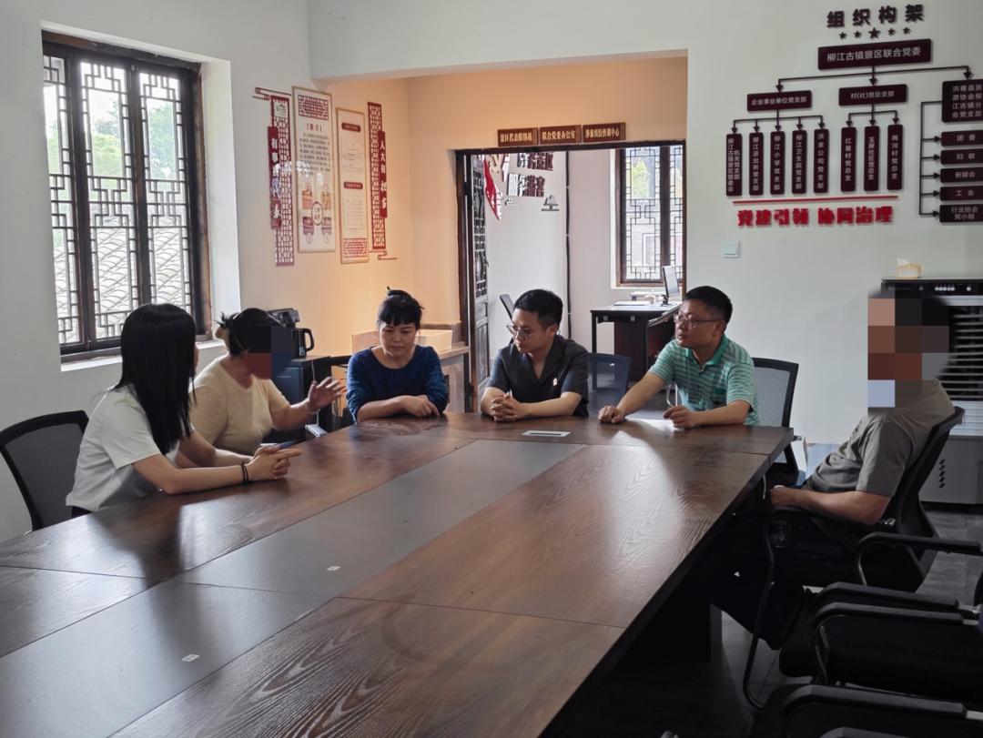 得知消息赶来的法庭干警和古镇景区旅游协会会长及时制止了双方的争吵,对围观游客进行了解释疏导。考虑到此次纠纷中可能存在商家恶意竞争的情况,若处理不当,会对古镇景区造成负面影响。于是,法庭干警第一时间联系了景区管委会,并协同古镇景区旅游协会会长,迅速与双方当事人一同前往柳江古镇涉旅纠纷快调中心进行调解。