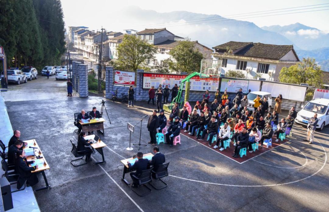 金色的阳光透过云层洒落山间,在临近大熊猫国家公园的瓦屋山镇炳灵社区,一场关于非法捕捞水产品案的巡回审判正在进行,人大代表、政协委员以及村社干部、村民代表40余人到场旁听。