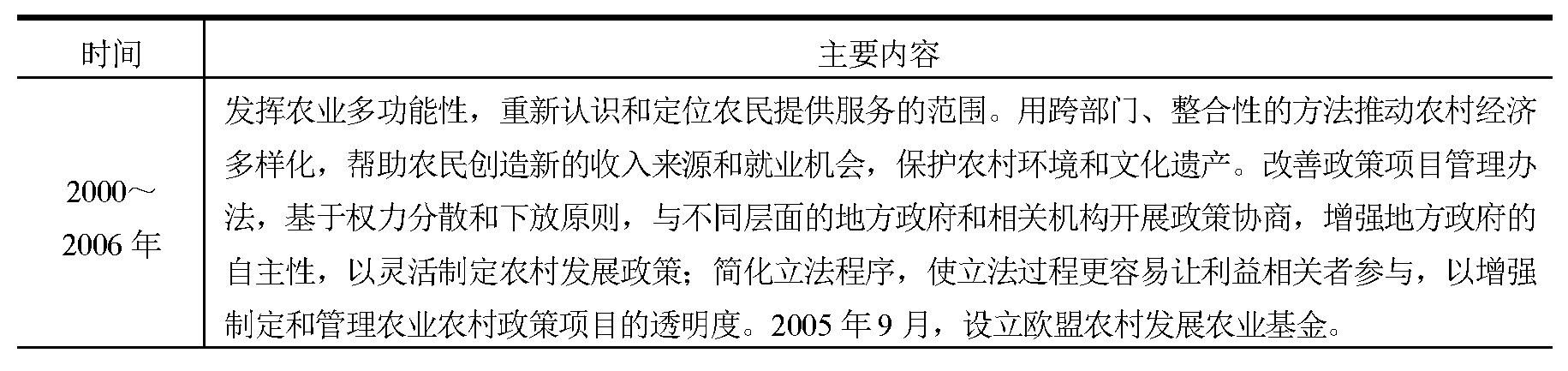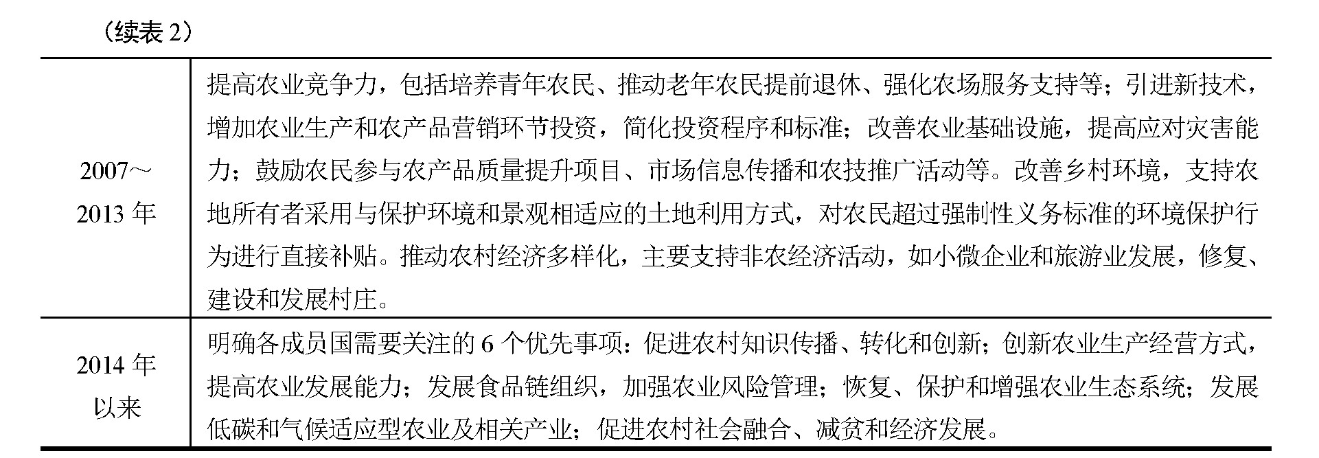 表2:2000年至今欧盟共同农业政策中的农村发展政策