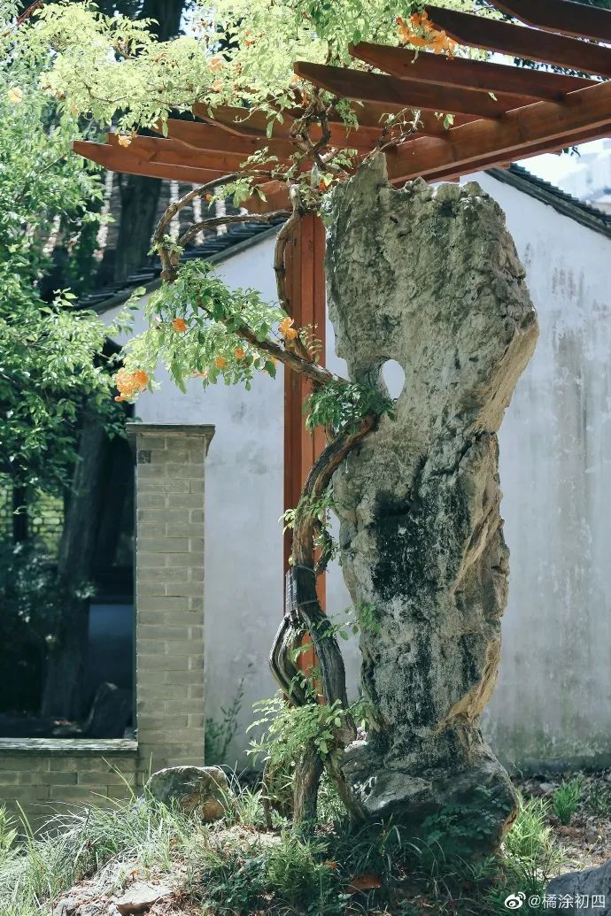 炎炎烈日下,常熟燕园的凌霄姗姗来迟地绽出橘色的花朵。它已经300多岁,比其他园子里的凌霄都开得晚些,起初生长在周神庙弄的民居里,后来搬到这个新家,倚靠湖石,软枝袅袅,不改张扬热烈,“攀援的凌霄花”,也有自己的坚持和智慧。