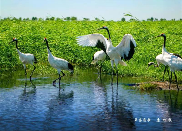 如今,扎龙国家级自然保护区焕发勃勃生机,沼泽广袤、湖水清幽、鱼虾丰美,美丽的丹顶鹤时而翱翔在蓝天碧水间,时而漫步于萋萋芦苇丛。