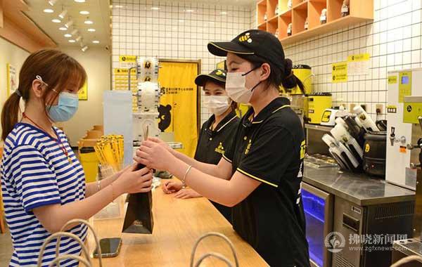 5月18日,在宿城国购广场一奶茶店,顾客在购买冷饮。 记者 王明辉 摄