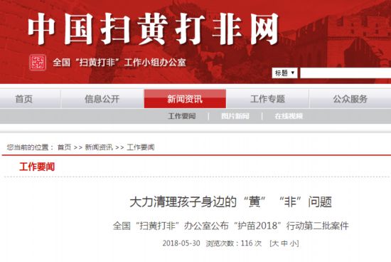 全国“扫黄打非”办公室负责人强调,孩子身边的“黄”“非”问题,必须早发现、早处置。对社会关切、群众举报、媒体报道涉及少年儿童的“黄”“非”问题,“扫黄打非”部门将及时响应、深入追查,坚决做好打击、查处和监管工作。
