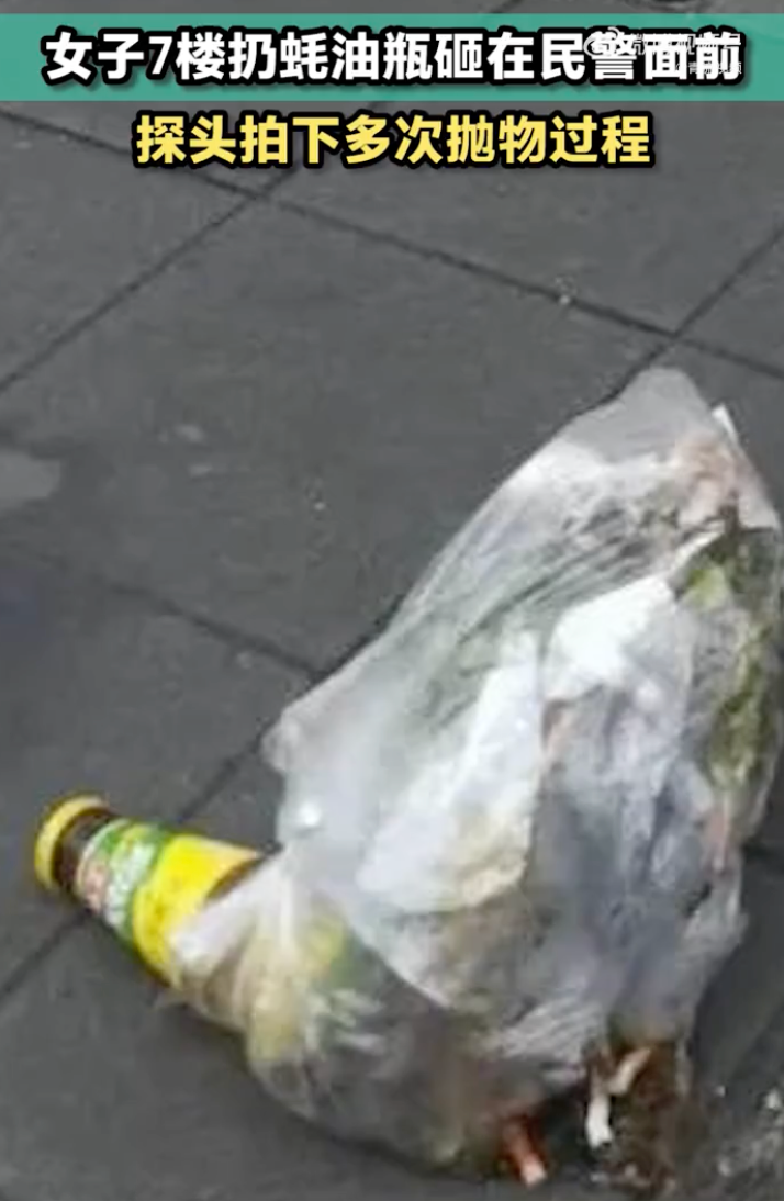 10.刑拘!居民从7楼扔蚝油瓶砸在民警面前:近日,江西南昌民警巡逻时突然天降垃圾袋,只听“砰”的一声,袋内的蚝油瓶瞬间碎裂,砸在民警面前。见此情景,附近的商家、居民纷纷到民警面前“诉苦”,称这附近经常有人乱抛垃圾。经民警调查,高空探头清晰地拍到7楼居民邓某高空抛物的全过程,且不止一次。26日,经过一个月的调查取证,邓某因涉嫌高空抛物罪被警方刑事拘留。(中国警方在线)