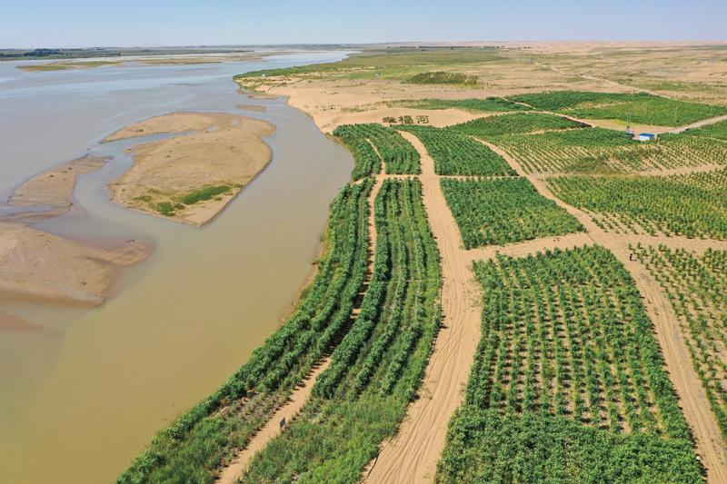 △荒漠与绿洲——新疆莎车县永安管委会生态防护林基地建设项目工程。 符超 摄