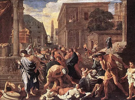 法国画家尼古拉斯·普桑(Nicolas Poussin ,1594-1665年)画作《阿什杜德的瘟疫》,描绘了中世纪西方瘟疫。