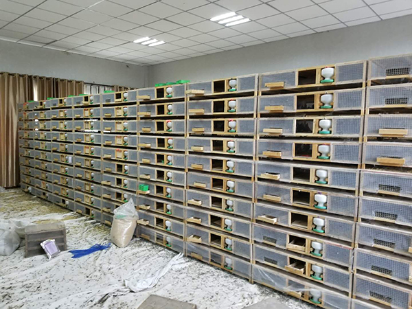 经过排查、蹲点,唐山森林公安在曹妃甸工业区河北天堃实业集团院内的废旧厂房里发现了催肥窝点,查获非法收购的国家“三有”野生动物黄胸鹀(读wú,又称“禾花雀”)和普通朱雀活体2万余只,当场抓获4名犯罪嫌疑人。