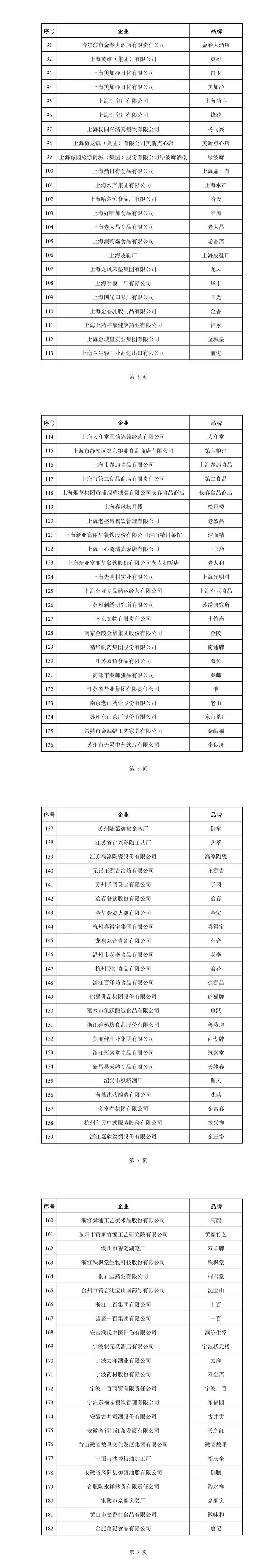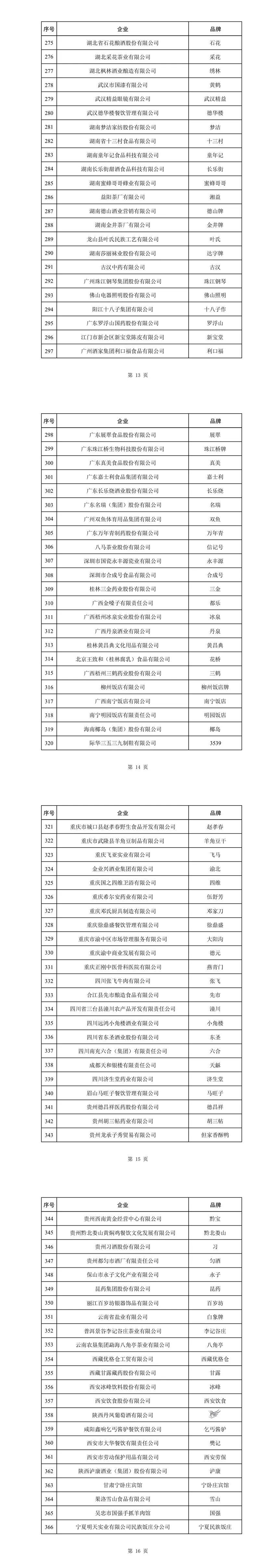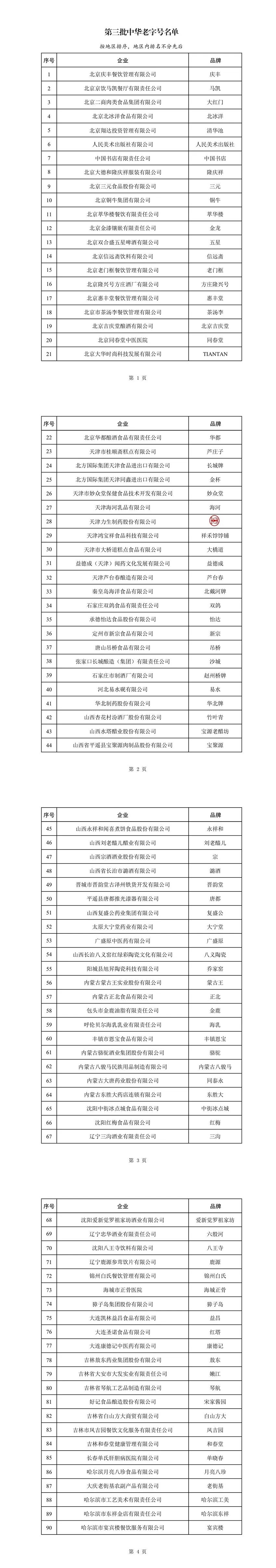 第三批中华老字号名单如下: