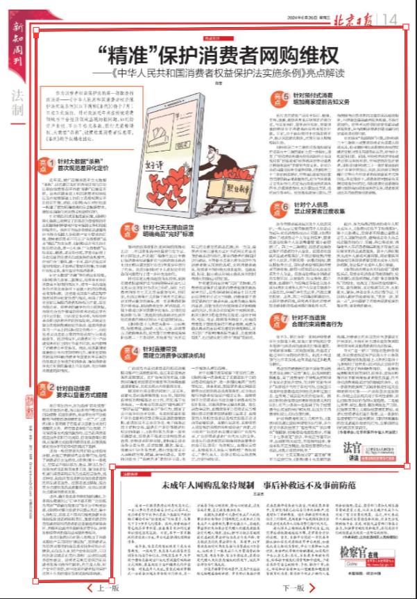 作为消费者权益保护法的第一部配套行政法规——《中华人民共和国消费者权益保护法实施条例》(以下简称《条例》)将于7月1日起正式施行。针对我国近年来在传统消费领域与平台经济领域出现的新问题,如刷好评产业链、不公平格式条款、预付式消费侵权、大数据“杀熟”、过度收集消费者信息等,《条例》均予以精准回应。