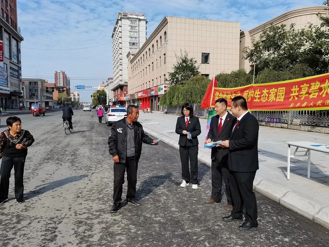 9月26日,东丰县人民法院走上街头,在人流相对密集处悬挂横幅,设立咨询台,向来往群众发放保护环境手册,讲解《环境保护法》《森林法》《野生动物保护法》等相关法律知识,同时向驻足群众讲解环境资源审判典型案例,告知群众破坏环境应当承担的法律后果,呼吁大家关注生态环境,引导人民群众树立尊重自然、保护自然的价值观和责任感。