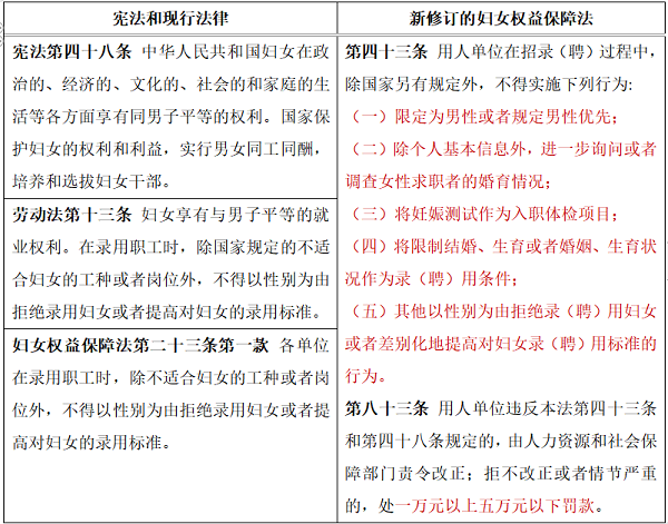2022年10月30日,十三届全国人大常委会第三十七次会议表决通过新修订的妇女权益保障法,自2023年1月1日起施行。该法修订草案曾两次在网上公开征求意见,分别收到40余万、30余万条意见,是近年来收到意见数最多的法律草案之一。那么,这部法律的修订为何受关注程度如此之高?在妇女劳动权益保护方面,这部法律相较现行法律法规究竟有哪些亮点,在劳动用工过程中用人单位应如何对女职工进行特殊保护?本文将通过对比宪法、现行法律法规相关内容进行解读。