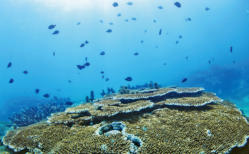 多年来,海南陵水分界洲岛持续开展珊瑚保育工作,实施珊瑚移植等海洋生态修复工程,附近海域珊瑚覆盖率显著提高。图为2023年6月8日,在分界洲岛附近海域拍摄的珊瑚。 新华社记者 张丽芸/摄