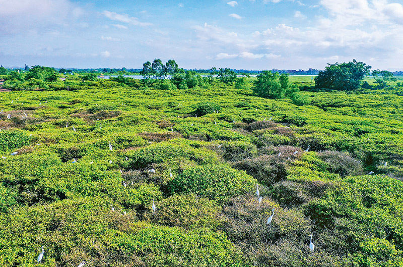 红树林是扎根于海岸潮间带的胎生木本植物,既可防风消浪,又能净化海水,还为鱼虾鸟类提供栖息之所,素有“海上森林”、“海洋卫士”之称。图为2023年7月23日拍摄的广西钦州茅尾海红树林自然保护区(无人机照片)。 新华社记者 曹祎铭/摄