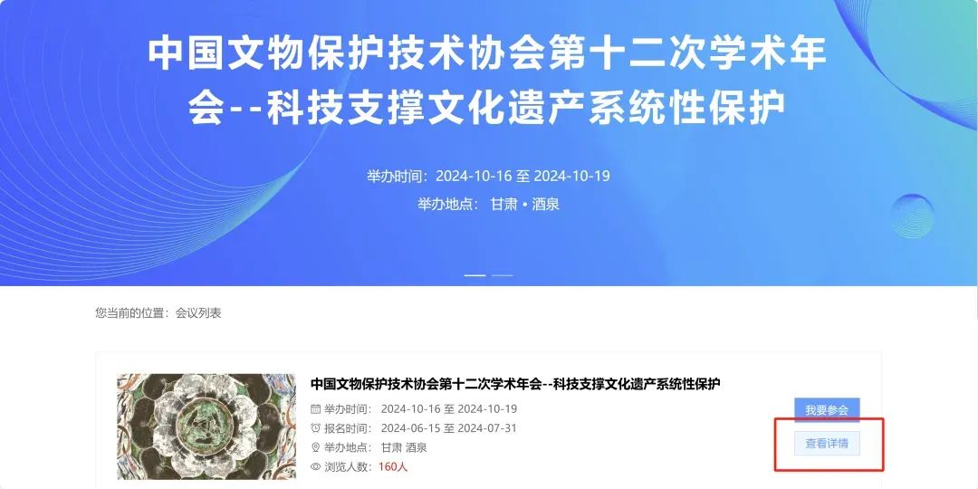 登录中国文物保护技术协会官方会议报名网站注册报名,网址:#/meetingHomeList。进入页面后在会议列表中点击“查看详情”阅读报名指南,按操作步骤完成线上报名。(会员可使用手机号登录报名系统,非会员需注册账号登录报名。)