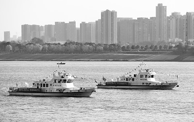 图为渔政执法船队从长江武汉段江面驶过; 新华社发