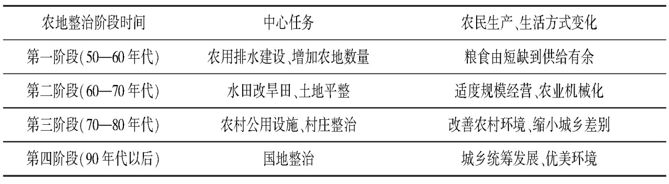 表1.日本农地整治阶段、中心任务和农民生产、生活方式变化一览表