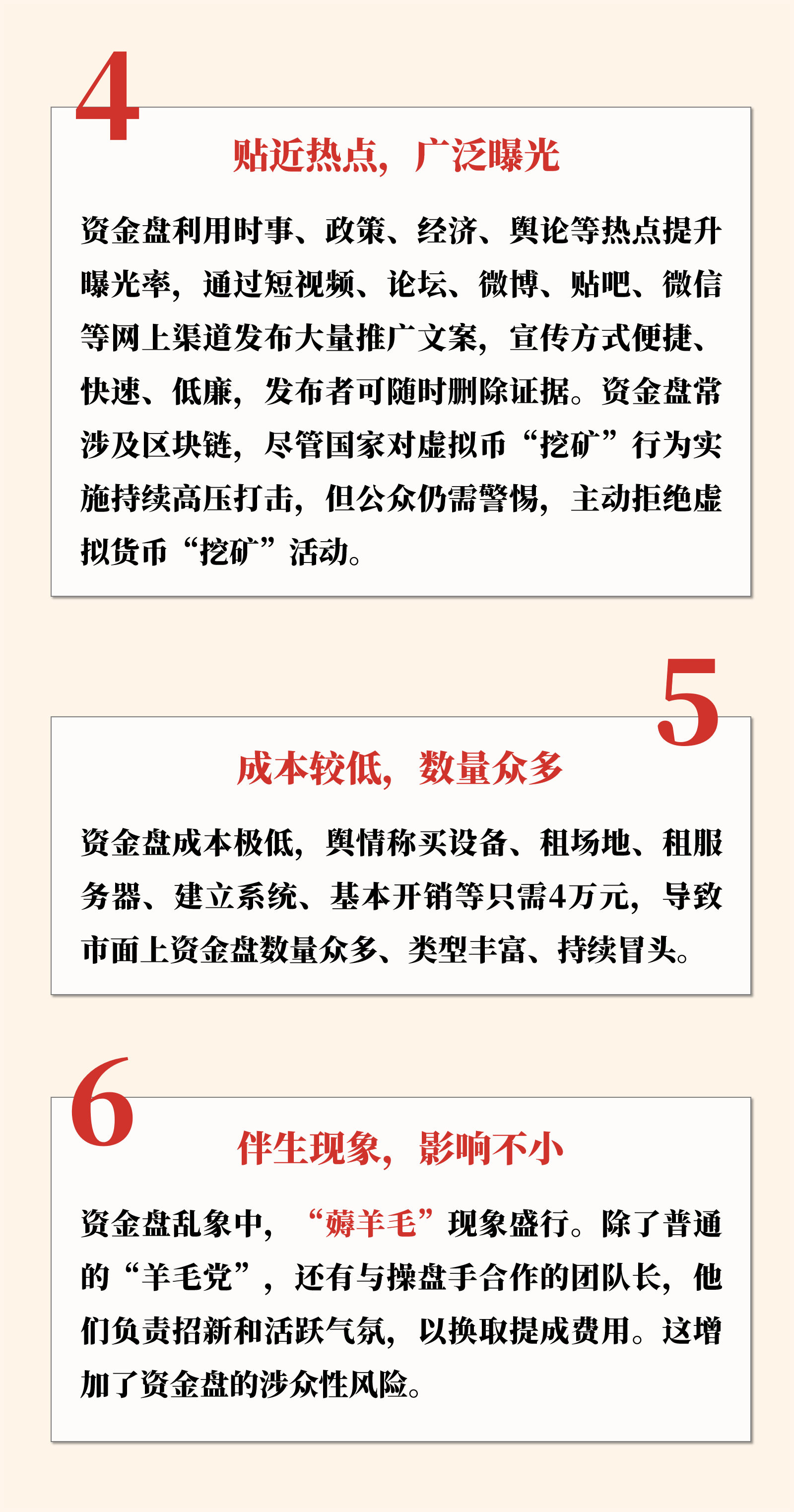 资金盘是非法侵占财产的突出乱象,具有网络化、快速敛财、非法性、利诱性、涉众性和跨地域等特点。虽然组织结构不如大型非法集资或传销严密,但其数量多、花样翻新,对公众具有迷惑性和吸引力,传染能力强。