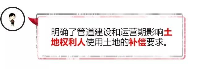 因管道运行和管道保护,影响土地使用的,管道企业还应当按照管道建设时土地的用途,综合考虑土地使用功能受影响的程度等因素,对相关权益人给予补偿。