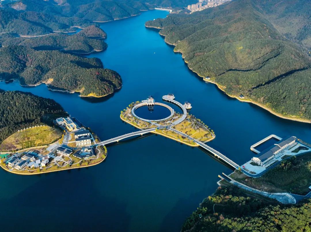 >>群山环抱下的杭州市余杭区闲林水库,蓝天碧水风光优美。 视觉中国供图