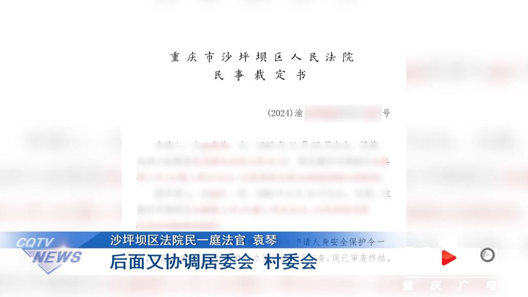 沙坪坝区法院民一庭法官袁琴介绍,“文某向法院反映情况之后,承办人员审查核实了证据,依法制作了人身安全保护令,后面又协调居委会、村委会、司法所、派出所、妇联等相关部门,在社区办公室向当事人送达文书,对被申请人进行了法制宣传教育,同时充分倾听了双方的诉求,对他们进行矛盾纠纷化解工作,最后还根据女方的情况给她推荐了工作,帮助女方顺利融入社会。”
