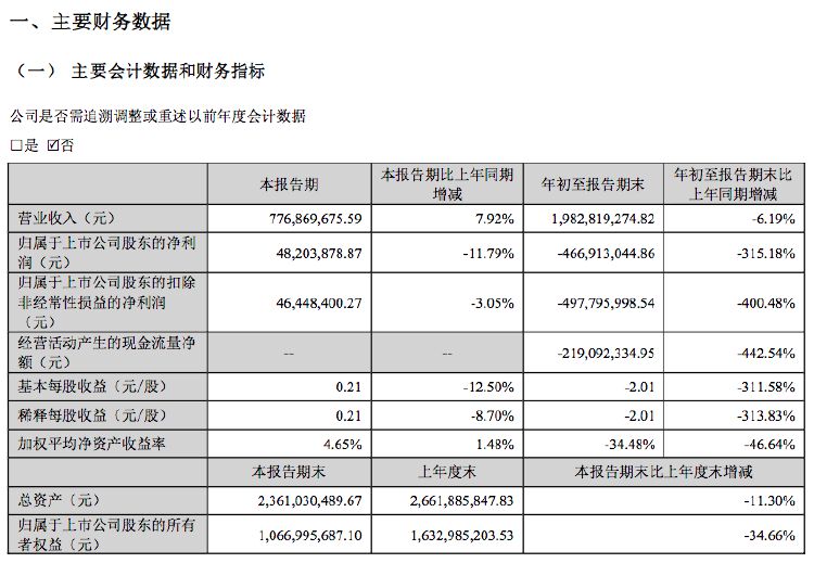 三季报出现大幅亏损