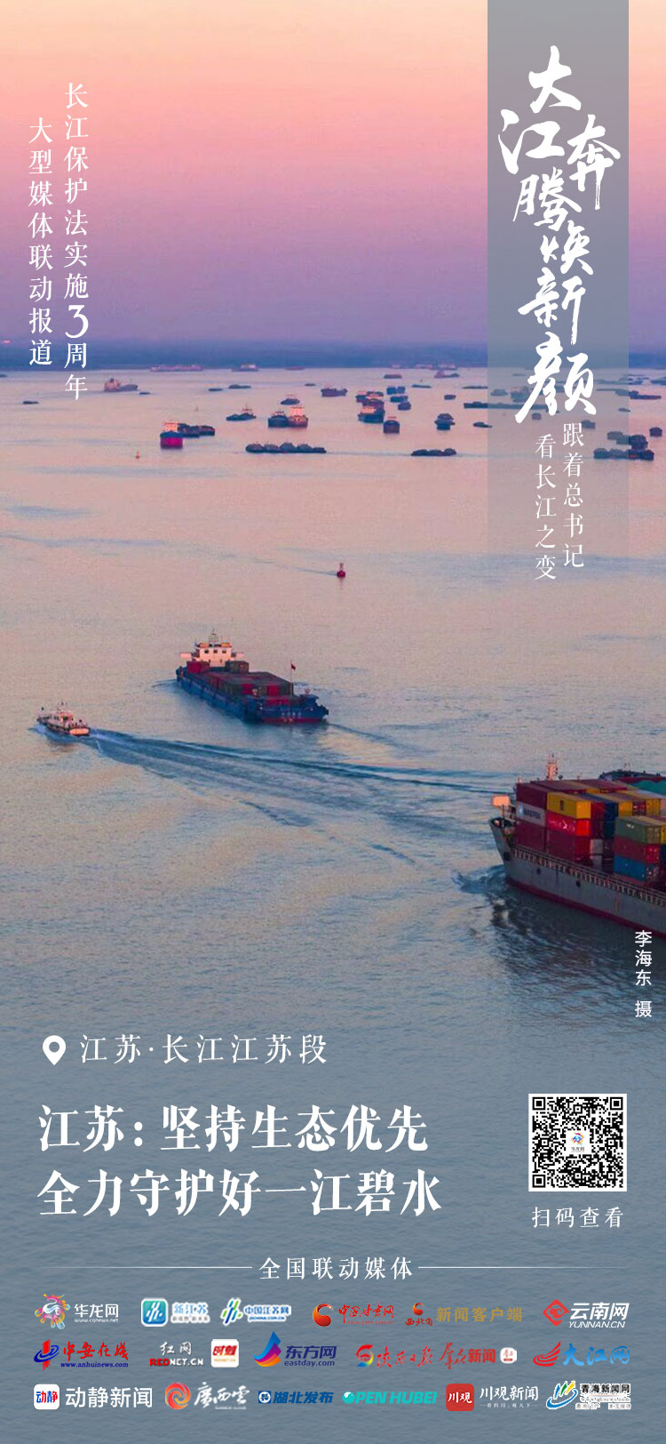 2024年3月1日,《中华人民共和国长江保护法》实施三周年之际,全国两会前夕,华龙网联动长江流域各主流媒体,携手推出“大江奔腾焕新颜 跟着总书记看长江之变”系列融媒体报道,见证一江碧水展新颜。