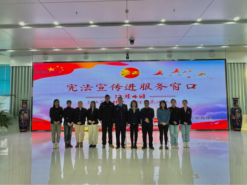 宪法宣传进服务窗口。充分发挥政务服务大厅宣传阵地优势,利用LED电子屏滚动播放宣传标语、张贴宣传海报和发放普法宣传品引导群众自觉守法、遇事找法、解决问题靠法,营造人人知宪法、人人讲宪法的良好氛围。