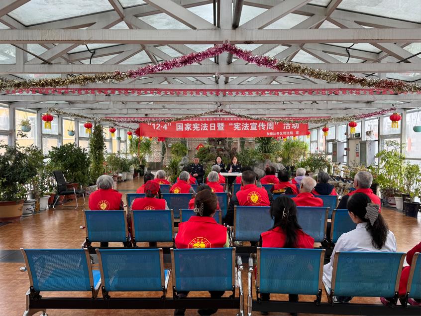 宪法宣传进养老院。在加区长虹养老中心,专业工作人员通过通俗易懂的语言和生动鲜活的案例,深入浅出地讲解了与老年人日常生活息息相关的法律法规,让老人们在学习法律知识的同时,也增强了自我保护意识。