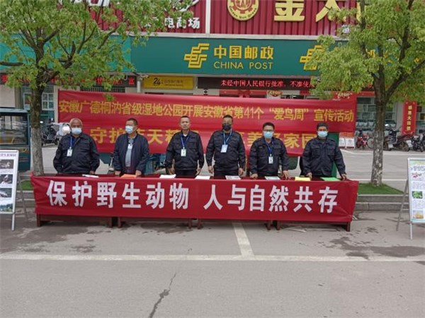 为全面宣传贯彻《中华人民共和国野生动物保护法》及实施条例、《安徽省实施<中华人民共和国野生动物保护法>办法》等相关法律法规,切实加强野生动物保护工作,自全省第41个“爱鸟周”以来,广德桐汭省级湿地公园管理处联合誓节自然资源和规划所开展了“守护蓝天精灵,共享美好家园”为主题的“爱鸟周”系列宣传活动。