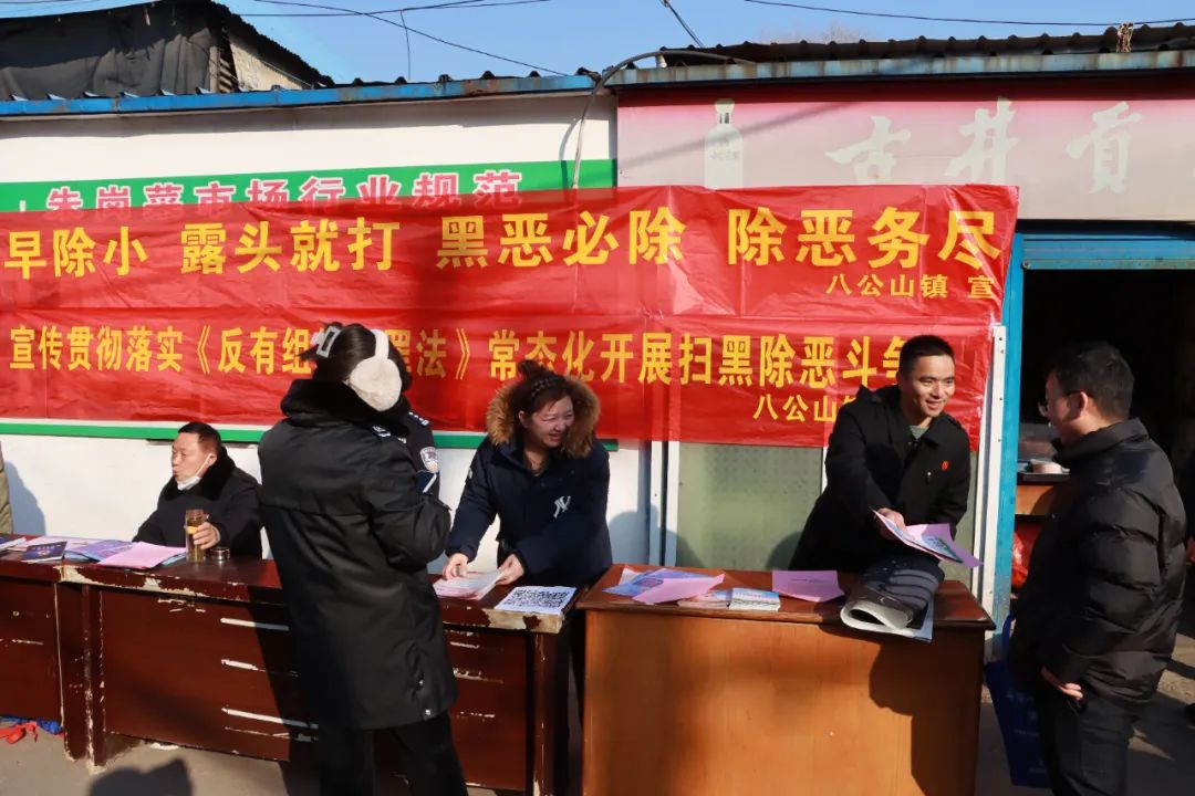 1月26日,八公山区法院组织干警,深入朱岗新村菜市场扎实开展常态化扫黑除恶“打早除小”工作宣传活动。