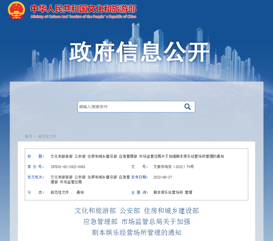《文化和旅游部 公安部 住房和城乡建设部 应急管理部市场监管总局关于加强剧本娱乐经营场所管理的通知》政策解读