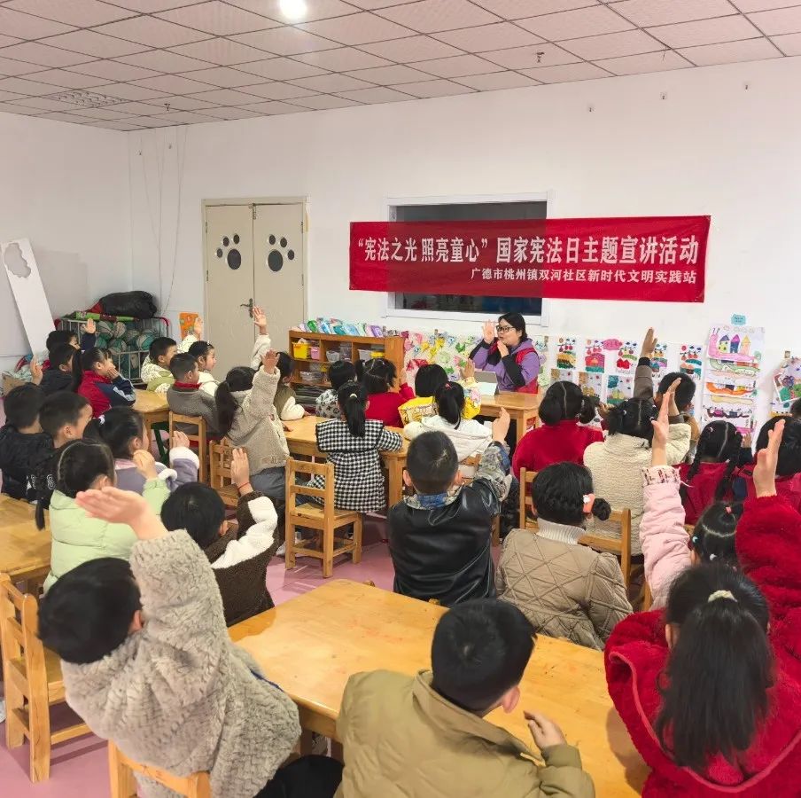 桃州镇双河社区妇联邀请安徽渊源律师事务所律师到海亮幼儿园开展“宪法之光照亮童心”普法宣传活动。