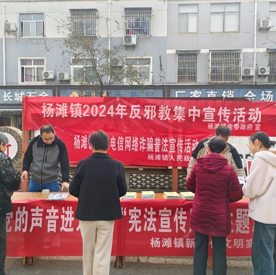 杨滩镇妇联在杨滩街道开展宪法宣传日活动,重点针对宪法、反电诈、反邪教等内容进行了宣传。
