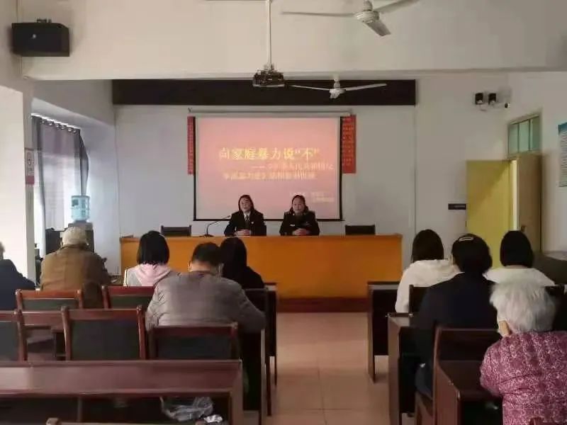 在仙桃市龙华山街道油榨湾社区,仙桃法院司法警察大队大队长黄利华和龙华山人民法庭周静法官通过鲜活的案例与生动的语言,深入浅出地为该社区妇女同胞讲解了《反家庭暴力法》等相关法律法规,重点介绍了人身保护令、家庭教育令等热点法律知识,有针对性地提出了预防和制止家庭暴力的方法和途径,引导教育在场妇女同胞学会运用法律武器维护自身合法权益。